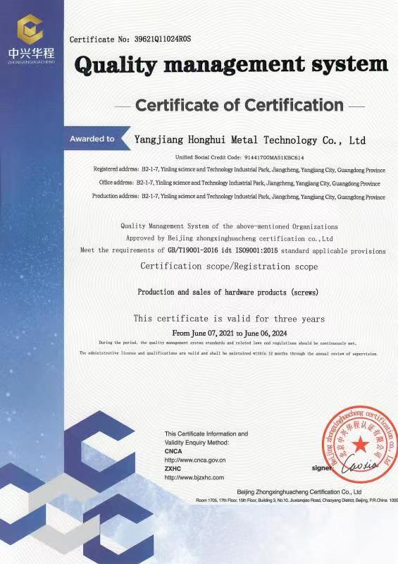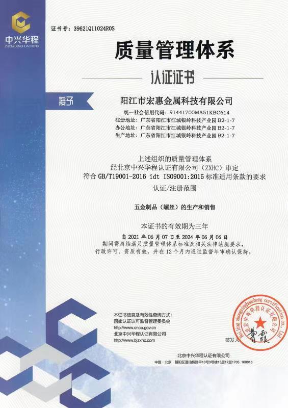 廣東宏惠金屬公司是家20多年一直專(zhuān)注鉆尾螺絲開(kāi)發(fā)與生產(chǎn)的企業(yè),是國(guó)內(nèi)較早做鉆尾的廠家之一,同時(shí)也是國(guó)內(nèi)專(zhuān)業(yè)開(kāi)發(fā)生產(chǎn)鉆尾螺絲的企業(yè)之一。 我司地址為于廣東省陽(yáng)江市江銀嶺科技園距沈海高速白沙出口不到2公里,距陽(yáng)江高鐵站也只有十余公里交通便利。 公司占地120畝,擁有超500臺(tái)套專(zhuān)業(yè)設(shè)計(jì) 生產(chǎn) 檢測(cè)設(shè)備。一個(gè)超200人的專(zhuān)業(yè)團(tuán)隊(duì),能夠嚴(yán)格按照ISO9001質(zhì)量體系要求生產(chǎn)符合GB DIN AS3566 ANSI JIS BS等標(biāo)準(zhǔn)的產(chǎn)品,生產(chǎn)銷(xiāo)售各種高品質(zhì)緊固件系列產(chǎn)品,為中高端客戶(hù)提供優(yōu)質(zhì)服務(wù)。也可按照客戶(hù)要求設(shè)計(jì)生產(chǎn)各種鉆尾,年產(chǎn)高品質(zhì)碳鋼 不銹鋼鉆尾螺絲2萬(wàn)余噸.在各大客戶(hù)的鼎力支持下產(chǎn)品暢銷(xiāo)全國(guó),并遠(yuǎn)銷(xiāo)亞 非 拉 歐等地,在這20多年發(fā)展的道路上我司堅(jiān)持“以質(zhì)量求生存,以信譽(yù)求發(fā)展”的精神理念不斷完善公司體系。